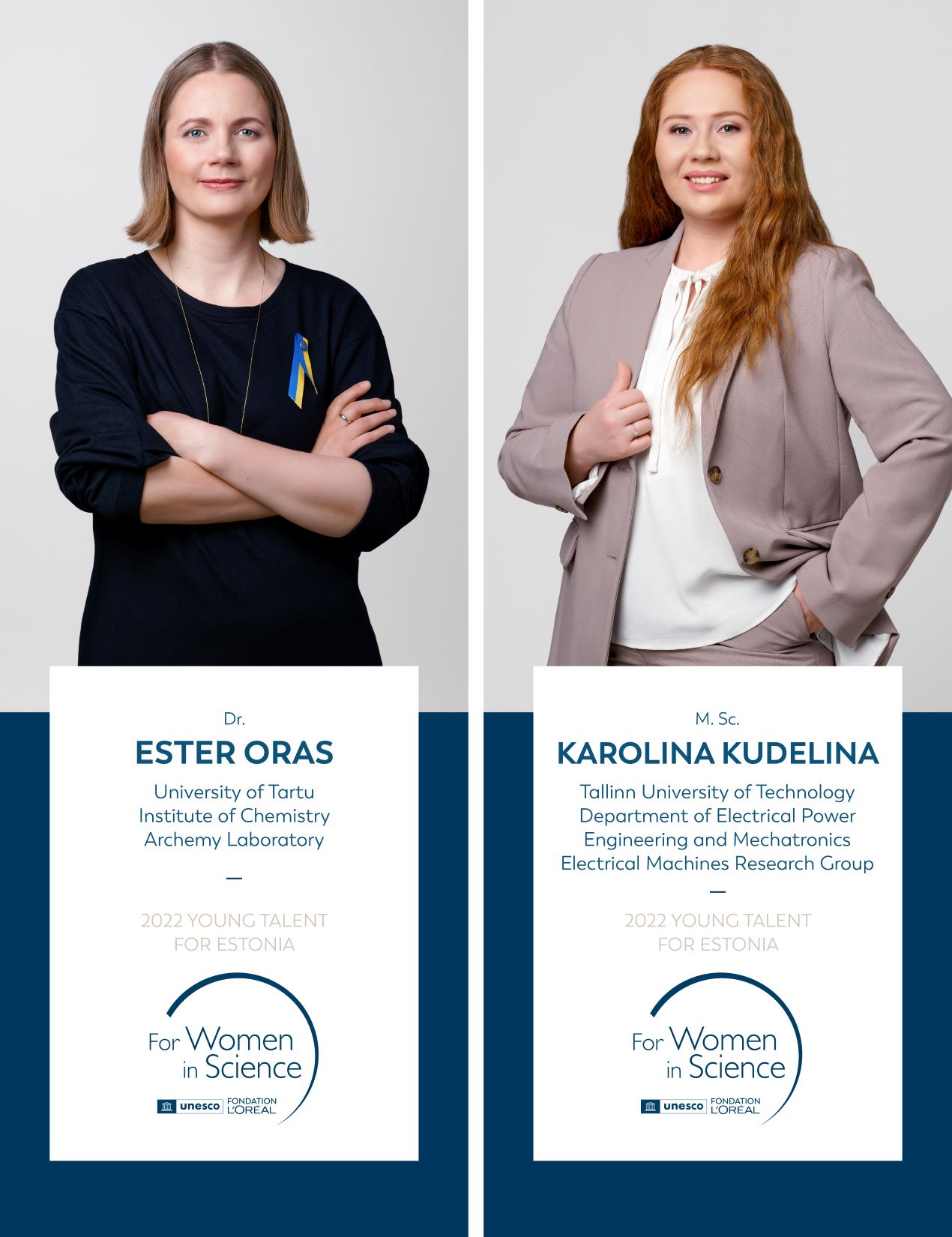 L’Oréal-UNESCO noorte talentide Baltikumi programmi „Naised teaduses“ 6000 euro suuruse auhinna pälvinud dr Ester Oras on Tartu Ülikooli keemia instituudi analüütilise keemia kaasprofessor ning Karolina Kudelina on Tallinna Tehnikaülikooli elektroenergeetika ja mehhatroonika instituudi doktorant-nooremteadur. Naisteadlaste sõnul on stipendium väga oluline nii nende enda teadustöö jätkamiseks kui ka julgustamaks teisi noori naisi teadlase karjääri valimisel.