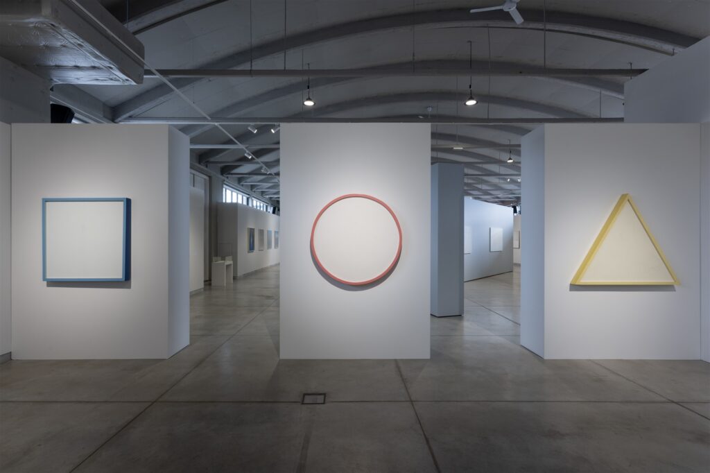 Näituse algust valvav triptühhon „Kolm: Kolmnurk. Ruut. Ring“ (1979), mille süžeeks on vaid valguse vaiksed üleminekud.