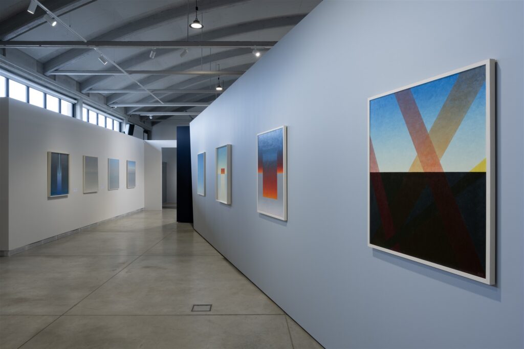 Pimeduse pragunemine valguse survel ning sellest kokkupuutest sündiv värvispekter on vaatajale ulatatud eukleidilise korraarmastusega, kahe maailma kokkupõrge on võtnud täisnurkse sisselõike kuju.