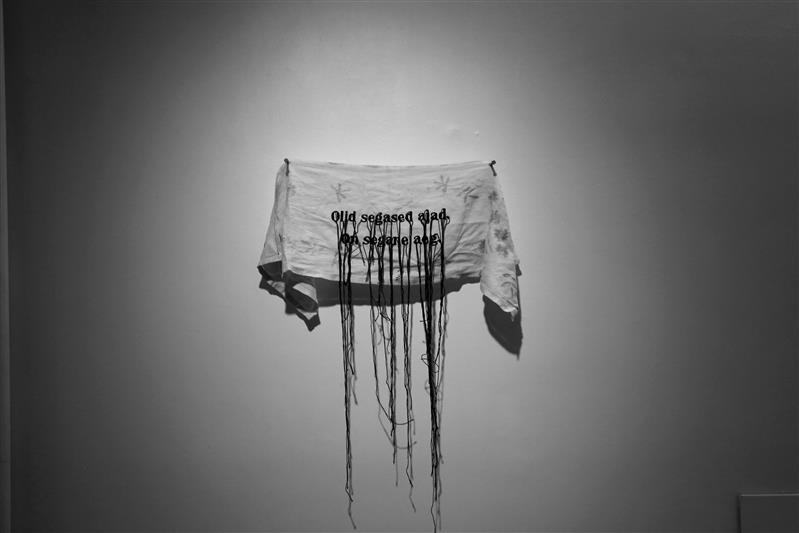 Intensiivne keskkond on täis identiteedikaotust ja selle taasloomist ning koosneb täpselt balansseeritud fragmentidest. Ruumi täidavad niitidest nõretavad ja traageldatud nõud, tekstiilid, tikandid, portselanikillud, kettjalaga tool, liuast ikoonijäljendid, maastikumaali lõigatud portree. Argise olemise algosakesed ning rišeljöötikandi õõv mõjuvad kõrvuti argipäeva ja isetegemise nihestatud kombinatsioonina koos juba lahkunud vanaemaga.1 Materjalidega manipuleerimise oskus ja ootamatu käsitlusvalik avaldab muljet, suunates mõtte paljudele teemadele, asjadele, materjalidele ja nende tähendustele sealhulgas.