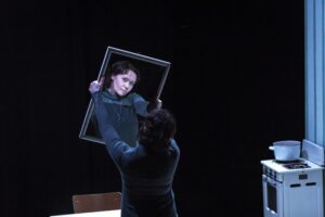 Sellest ootusest lähtuvalt on köitvaim Justyna monoloog, tänu Karin Tammaru lavaelu tragikoomilisele haprusele, näitleja peenele distantsitajule. Muide, Bizio näidendi pakkuski teatrile lavastada Karin Tammaru. Keskealise naise koondamisjärgne stress on kindlasti paljudele äratuntav situatsioon. Aga see, mismoodi Tammaru vahendab Justyna hingepidetust, uue mantli ostmise unelmat ja selle jahmatavat puänti, tasane naeratus segunemas pisarakesega silmanurgas, on kurbnaljakas ja seeläbi kummaliselt helge. Ka lavastuslikult on Justynale kingitud hingelise lennulootuse hetk, kui naine hoiab silme ees peeglit, vaatleb peeglist langevas valguses oma unenägu, kohtumist surnud isaga. Selle viivu saladuse eest olen lavastajale, näitlejale ja valguskunstnikule Margus Vaigurile tänulik.