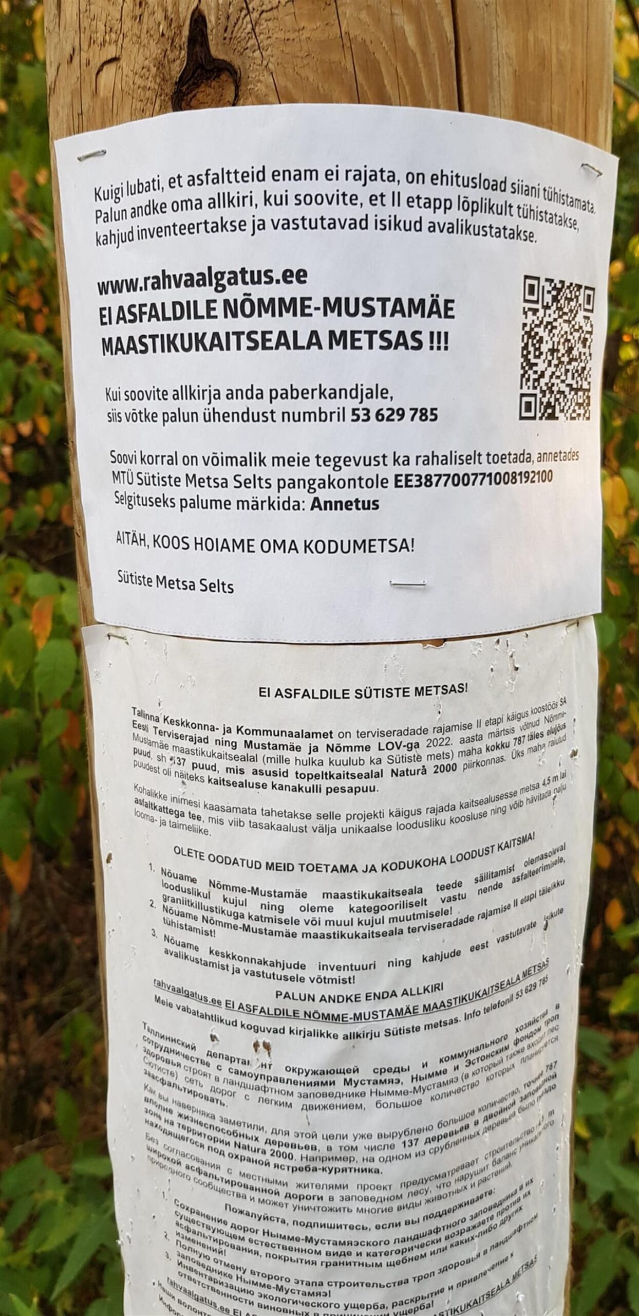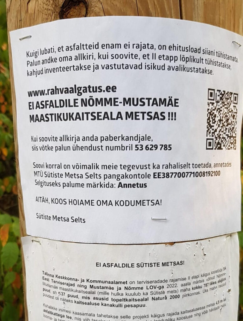 Sama aasta märtsis oli tehtud Nõmme-Mustamäe maastikukaitsealal raie, mille käigus võeti maha ligi 800 puud. Tallinn planeeris täiendada maastikukaitseala juba kasutusel olevat sotsiaalset taristut, et suurendada eri sihtrühmadele ligipääsetavust ja kaitsta loodust tallamise eest. Elanikud said raiest teada, kui olid avastanud oma harjumuspärastelt metsaradadelt kännud. Juhtum ärgitas kohalikke koonduma. Omavahel suheldi Facebookis, Mustamäe kortermajade trepikodadesse ja metsapuudele kleebiti silte üleskutsega kokku saada ja arutada, mis meie metsas toimub.