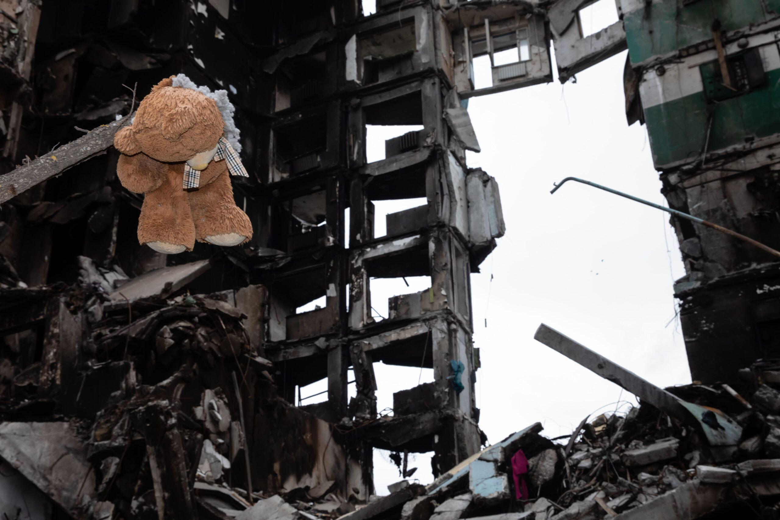 Hea võimalus seda omal nahal kogeda on kunsti- ehk reisijate tänav Balti jaama ja Telliskivi loomelinnaku vahel kulgeval kergliiklusteel, kus pika rivina kulgevad Mõhhailo Palintšaki, Serhi Vaganovi ja Jana Sidatši dokumentaalsed kaadrid. Millise kujutise mõju on suurem? Kas pikali kukkunud veripunase STOP-märgi, kahvatute käte tumesiniseks tõmbunud küünte, evakueeritavas akvaariumis ujuva üksiku neoonlilla kalakese või kuulirahest tabatud luigemaali oma? Või mõjuvad kõige rohkem hoopis monokroomsed mustrid, mis on moodustunud lagunevatest skelettidest ja laigulistest sõjaväemundritest, okastraadikeerdudest ja sisse langenud seinte rägastikust, raagus puudest tühermaal ja küntud vagudest põllul, kuhu keegi enam tükk aega midagi külvata ei pruugi? Kui kriitiliselt siinjuures mõeldakse? Kas pruun ja pealtnäha puhas kaisukaru sattus tolmuste varemete vahele rippuma juhuslikult? Kas need on vaid üksikud fragmendid või koosnebki Ukraina praegu vaid fragmentidest?