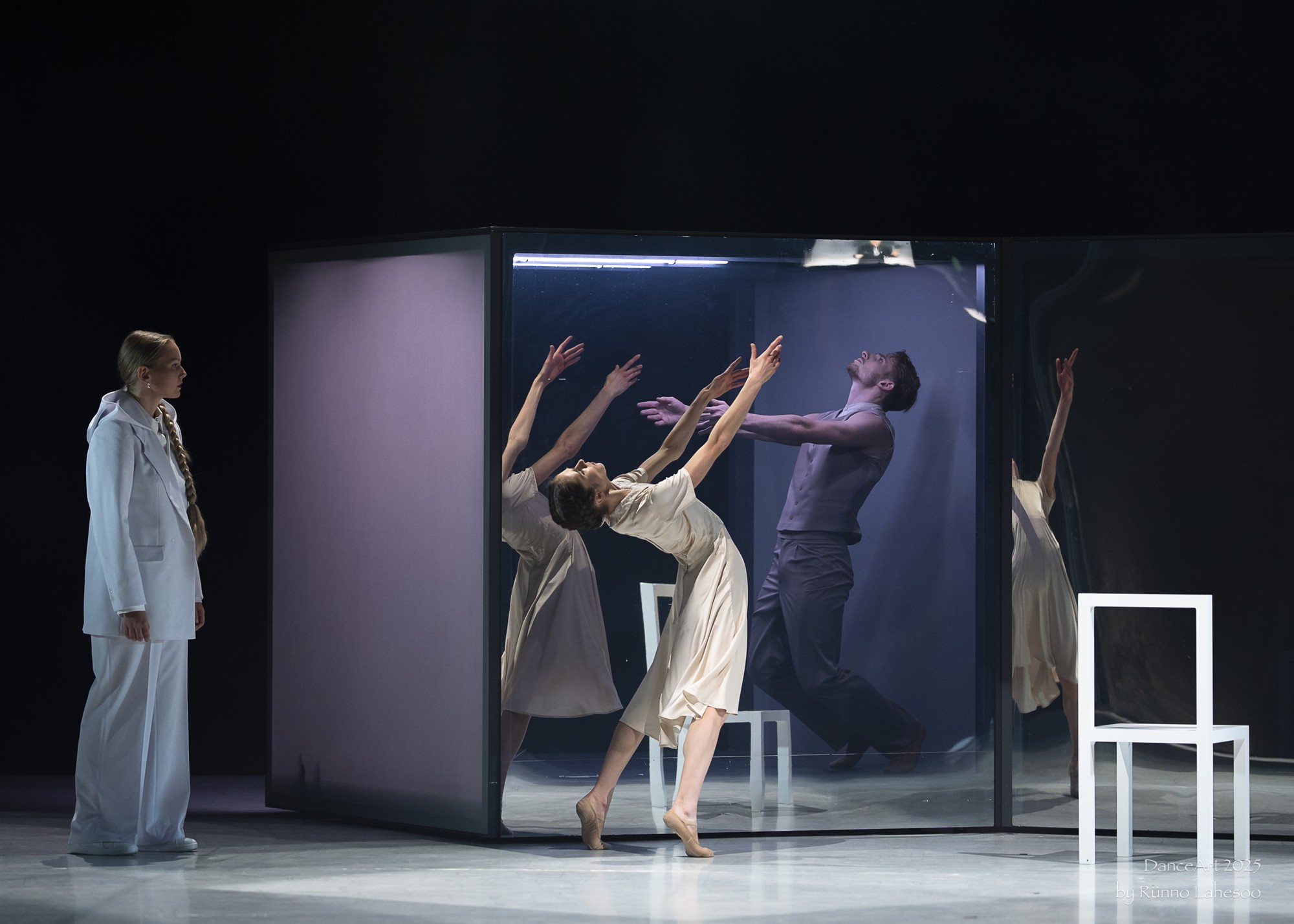 Mulle puges eriti sügavalt hinge stseen peeglitega („Für Lennart in memoriam“), kus tantsija seisab peegeltahukate keskel, otsides kontakti oma peegeldustega – püüab leida teed iseendani, kuid takerdub ikka pealispinda. Ka soov teise inimesega kokku puutuda jookseb tühja: kulgetakse üksteisest mööda, lähedalt, kuid ühendusse astumata. See on üks neid kohti lavastuses, kus tants, muusika ja kujundus põimuvad sisuliselt – inimlik kannatus muusikas kõlava kosmilise kurbuse taustal.