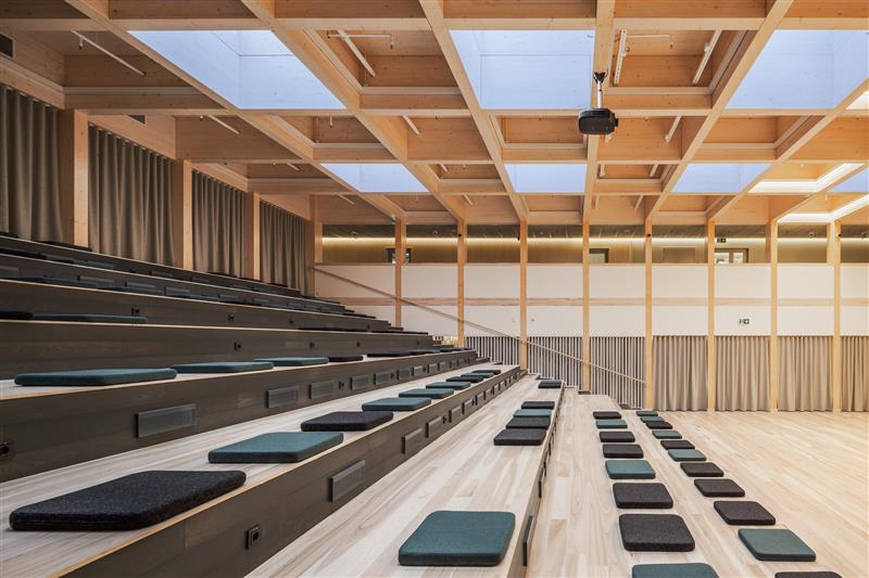 Kooliruum on ka õppevahend alates ruumide analüüsist, enda ja ruumi suhete uurimisest kuni detailide ja materjalideni – uurida saab nende omadusi, mõju ja väärtust ning seoseid teiste eluvaldkondadega. Näiteks võib Viimsi gümnaasiumis (Kamp Arhitektid, 2018) uurida puidukasutust oma saali näitel. Hoone keskel paiknev ruum toimib kooli südamena, kus toimub alati midagi. Üleni puidune ruum on suur ja avar, aga samal ajal soe ja hubane, samuti keskkonnasõbralik ja toimepidev. Sellesama ruumi alusel võib arutleda ja teha ülesandeid matemaatika ja füüsika, psühholoogia, majanduse, keskkonnahoiu ja metsapoliitika teemadel.