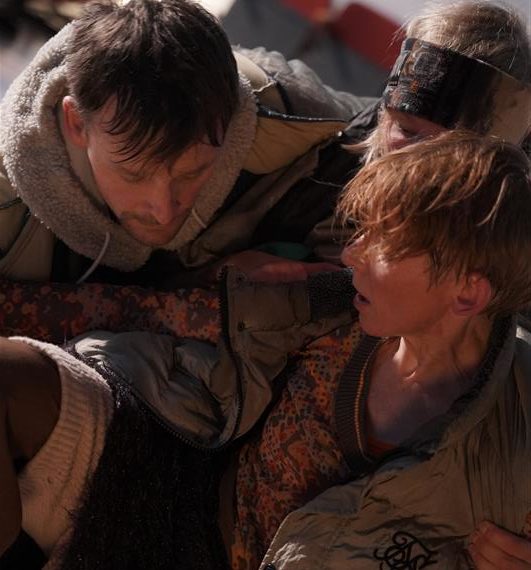 Poiss kerkib maast. Lepitakse. Aidatakse üksteist riidesse. Tõrgutakse abistamise suhtes, lepitakse. Vahepeal ollakse justkui põranda küljes kinni (sellesarnane episood oli vist „Godot’s“, kus korraga millegipärast ei saada enam maa küljest lahti, jah „Godot“ meenus mitmel korral.)