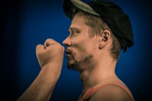 Kui esimene vaatus lõpeb, jõllitavad Karpovi Joosep ja Sander Rebase Kustav jultunult publikut ja kõlab vinge räpp „Head eesti asjad“. Loen väikseks isiklikuks töövõiduks, et suutsin saalis Näsnäruda asukate kommenteerivad pilgud välja kannatada, kuni vennikesed poolvastutahtmist lava taha loivasid. Tohutult sürrilt mõjub eelmainitud muusikalilaul „Ma tahan olla öö“, mille saatel vihaseks saanud Kustav ajab Joosepit mööda lavasood taga. Siin ongi ideaalnäide Vihmari muusikalisest ulakusest: kohe ei saagi aru, mis lahti, kas petavad silmad või kõrvad. Nii vingelt nihkes tunduvad pilt ja heli. Vaimustav tajuhäire!