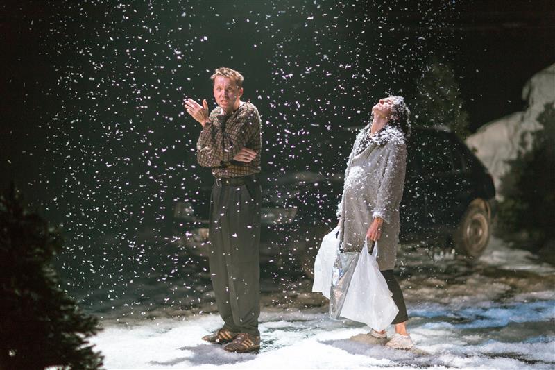 Oleks rumal hakata pärast näidendi ühekordset lugemist ja ühekordset laval nägemist polemiseerima lavastaja mitmekuise tõlgendajatööga. Seetõttu julgen esitada vaid mõtiskluse selle üle, mis mind täiselamuse saavutamisel segas. Mulle tundub, et oleme lugenud Toomperega näidendit vist pisut eri žanris. Minu meelest on tegemist poola dramaturgiale nii omase traagilise absurdiga, mille lavastamisel teravas groteskivõtmes on parimad poola lavastajad saavutanud viimasel poolel sajandil hiilgavaid tulemusi. Toomperel on see aga välja tulnud mõnevõrra ratsionaalsem, olustikulisem. Absurdisituatsioonid on kaldunud sketšireaks, millest igaüks on küll hästi välja mängitud, kuid ei lase tervikul tõusta vajaliku üldistustasemeni. Samas võtmes on teostatud ka lavastuse vaimukas kujundus (Kristjan Suits), mille puhul jääb mõistatuseks, kas meile tahetakse rääkida jõulumuinasjuttu või näidata tragifarssi hirmkülmas ja inimtühjas metsavahes. Lavastuses (ja kujunduses) on hetk, mis paneb kogu saali vaieldamatult võpatama. Küll oleks tahtnud, et kogu lavastus ja kujundus oleksid tõusnud jõulisema groteskiga just selle hetke tasemeni, praegu aga madaldub see leid pigem lihtsalt ägedaks nipiks.