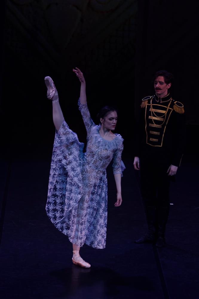 Mõjusad duetid. Hayley Jean Blackburni kehastuses pitsivahus noorim õde Irina on puhas nagu unistus helgest tulevikust. Ta kannab endas süütuse, ideaalse armastuse usku, mis murdub kahel korral: ta on nõus abielluma armastuseta ning tema väljavalitu Tusenbach (Gus Upchurch) hukkub duellil. Blackburni nõtke ja tundlik tantsuplastika on ajas küpsenud ja saanud värvi juurde, tütarlapselik füüsis on ühinenud väljendusjõulise näitlejameisterlikkusega.