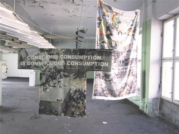 Tema ekspositsioonis ripuvad laest alla õhuline pluus kirjaga „Ka teadlik tarbimine paistab silma“ („Conscious consumption is conspicuous consumption“) ja kaks kangatükki. Kangastele on trükitud fotod tekstiilitehase tööst ning tootmisülejääkidest, mis avavad hästi globaalprobleemi – ületarbimise. Lendlevat pluusi võib vaadata rõivaeseme, protestiloosungi, aga ka kunstiobjektina. Töö ideega on hästi kooskõlas autori visiitkaart, mis toimib tarbimisühiskonna tillukese mudelina. Ekspositsiooni kuulub ka video kunstniku enda korraldatud aktsioonist Vabaduse väljakul. Sellega näitas ta, kuidas võivad tavalised riideesemed muutuda linna esindusväljakul plakatiteks või loosungiteks.