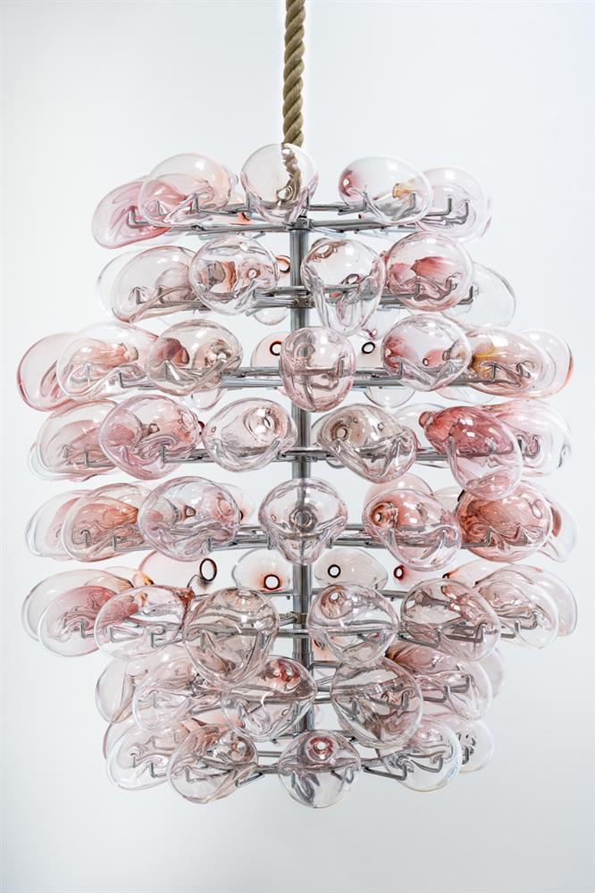 Beveridge’i imeõrnad klaasist pastellroosad elundid (vähemalt seda need meenutavad), mis kord on riputatud hõbedastele riidestangedele, kord kinnitatud hõbedase seinast eenduva mannekeeni jalgadele ja kord maja moodi ruudukujulise klaaskindluse sisse, mõjuvad oma hapras ilus küll veidi võõritavalt. Ruumis valitsevad korraga kummastus ja ihaldusväärsus.