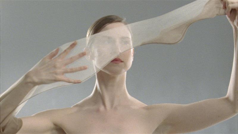 Kaader Marge Monko stiliseeritud 1970. ja 1980. aastate esteetikast kantud sukakoreograafia videost „Puhas nauding“ („Sheer Indulgence“, 2021).