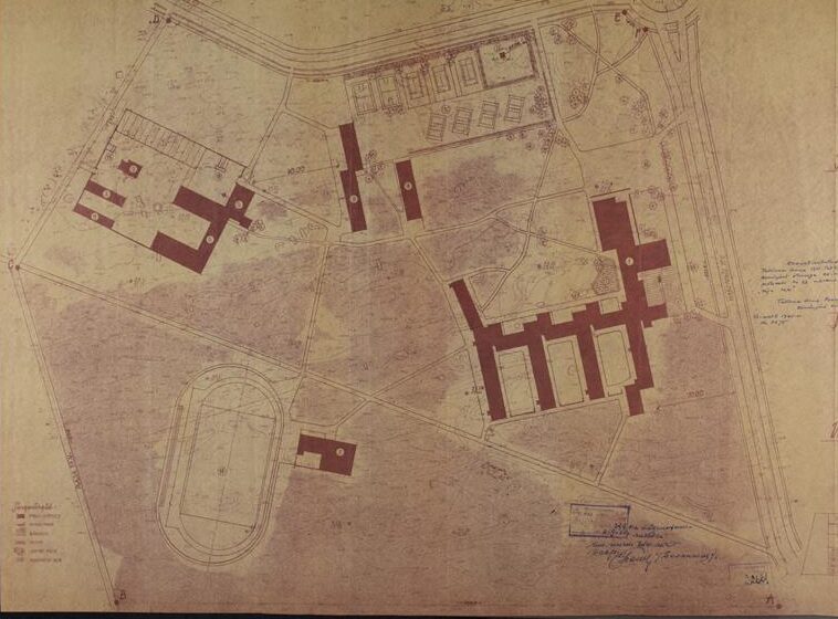 Tollal veel Nõmme haldusalasse jääva Haabersti tee ääres paiknevale 39 hektari suurusele maa-alale planeeriti Tallinna Polütehnilise Instituudi jaoks ühtekokku 22 eraldiseisvat ehitist. Instituudi kompleksile oli ette nähtud stalinistliku ajastu vaimus sümmeetriline, tugevalt kesktelge rõhutav planeering. TPI peahoone ette pidi tulema suur bassein koos purskkaevu ja mustriliselt kujundatud lillepeenardega. Ka peahoone taha oli planeeritud purskkaev ja arvukalt rohealasid.