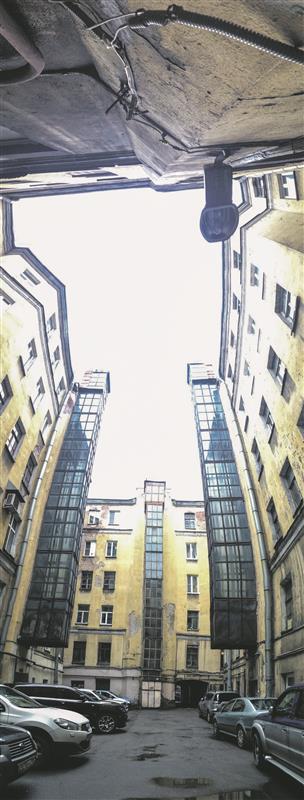 Kuigi XX sajandi alguses ehitatud majadel oli juba paraadtrepikojas lift, pidi teenijaskond ilma läbi ajama. Nõukogude kord muutis asja radikaalselt. Uhked kõrgklassi korterid, kus tubade arv võis küündida kolmekümneni, „saeti“ mitmeks tükiks. Ärandatud kinnisvara võeti täisvõimsusel kasutusse ja igasse tuppa pandi elama terve perekond. Mõnelegi Peterburi uusasukale oli saatus andnud kasutamiseks just tagumise sissekäigu. Võrdsuse aadete nimel tuli ehitada lift ka nendele, kuid selleks nappis ruumi. Jäi ainult üks võimalus: ehitada tõstuk maja välisseina külge. Nii saidki pärast Teist maailmasõda Peterburi sisehoovid uueks tunnusmärgiks majade külge riputatud piklikud klaasist risttahukad. Igas hoovis rippus neid neli-viis tükki ning sisehoovi traditsioonilise interjööriga neil konflikti ei tekkinud.