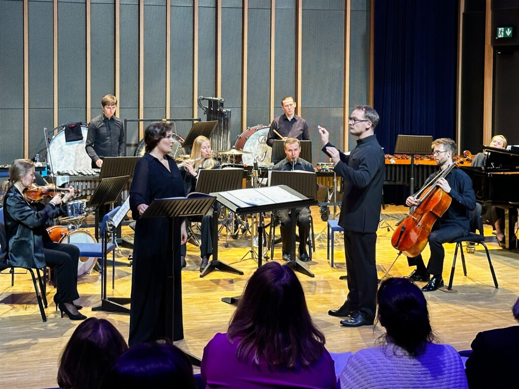Kontserdi teine pool võttis süngemad toonid. Ludensemble’i koosseisuga liitus sopran Maria Listra, et esitada John Corigliano tsükkel „Mr. Tambourin Man: Seven Poems of Bob Dylan“ – nagu pealkirigi reedab, on see kirjutatud Bob Dylani tekstidele. Erinevalt kontserdi esimesest, vägagi uue muusika pärasest teosest, on Corigliano tsükli kõla rangelt klassikaline, ja folgilik aspekt tuli Dylani tekstidest. Kui Dylani loominguga olen tuttav varasemast ajast, kuulsin Corigliano muusikat esimest korda ning see mõjus mulle vapustavalt. Instrumentaalse poole läbimõeldud rikkalik, kuid etteaimamatu kõla ja jõhker, peaaegu brutaalne lauluhääl, mis Dylani luulele elu sisse puhub, sobisid imeliselt kokku. Muheledes panin tähele, et mõrvarlikum näis just see teine teos, mitte sügisehõnguline „Murder Ballades“, mille järgi on pandud kontserdi pealkirigi.