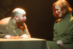 „Emmanuelle’i jälgedes“ (fotol Peeter Rästas ja Maarja Jakobson) võib mõnel õhtul panna saali rõkkama, teinekord räägivad näitlejad vastu tülpinud seina.