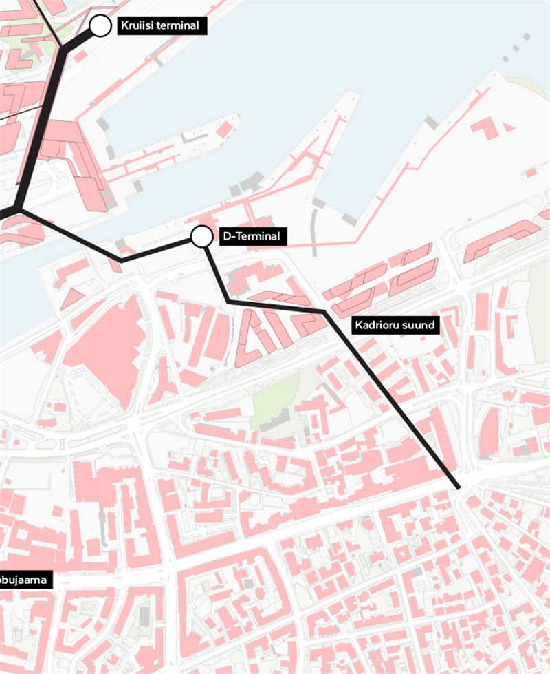 Uus-Sadama tänav ühendas juba XVIII sajandil sadamat Kadrioruga. Seda sihti mööda kulges veejuhe ja hiljem kitsarööpmeline raudtee. Praegu on see tee piirdeaiaga katkestatud. Selle taasavamisel väheneks tee pikkus D-terminalist Kadriorgu 600 meetrile ja annaks võimaluse see vahemaa mugavalt jalgsi läbida.