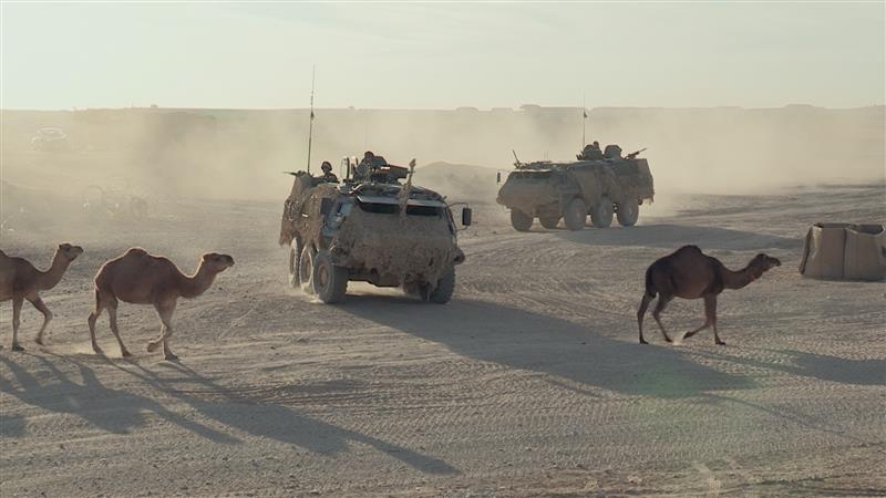 Sõjaväebaasis käib üksluine tegevus: kokad valmistavad toitu, sõdurid kontrollivad enne operatsioonile minekut relvi, noored treenitud kehaga mehed tõstavad kangi. Hommikul avaneb metallvärav ja sõdurid sõidavad või lähevad jalgsi tööle. Enne pimedust jõuavad soomukid töölt koju. Ja nii iga päev, kuni päris koju pääsemiseni.