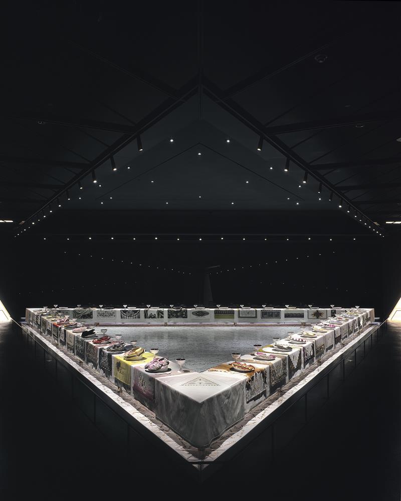 Aastatel 1974–1979 lõi Judy Chicago koostöös grupi naistega monumendi kõigile väljapaistvatele naistele, kes ei ole leidnud kohta ajaloos. Kunstniku nüüdseks legendaarne installatsioon „Pidusöök“ („The Dinner Party“) koosneb 999 naise kujutisest, fetišeeritud kolmnurga kujundist, lille ning tupe kui ilu ja väe kujundi sümbolist ning naiselikuks peetud materjalidest ja väljendusvahenditest (tikkimine, keraamika, ilukiri, toiduvalmistamine). Ühistööna tehtud installatsiooni valmimiseks kulus viis aastat ja see oli reaktsioon Linda Nochlini kuulsale esseele „Miks pole olnud suuri naiskunstnikke?“ (1971).4 Tänavu sügisel lahkunud Linda Nochlin osutas oma essees naiste ajaloolisele ebavõrdsusele ning lünkadele hariduses, mille tõttu naised ei olegi nähtaval olnud. Judy Chicago teost peeti omas ajas maitselagedaks ega osatud hinnata uurimistööd selle taga: 999 naist jumalannadest ja märtritest arstide, sufražettide, kirjanike ja teisteni märgiti ühisele monumendile. 1979. aastal ei olnud need naised üldtuntud nagu praegu, kus nende kohta on vähemalt Wikipedias põhjalik käsitlus. See teos tähistab neljakümne aasta jooksul aset leidnud muutust. Võib isegi väita, et #metoo liikumist ei pruugiks olla naiste solidaarsuse monumendita.