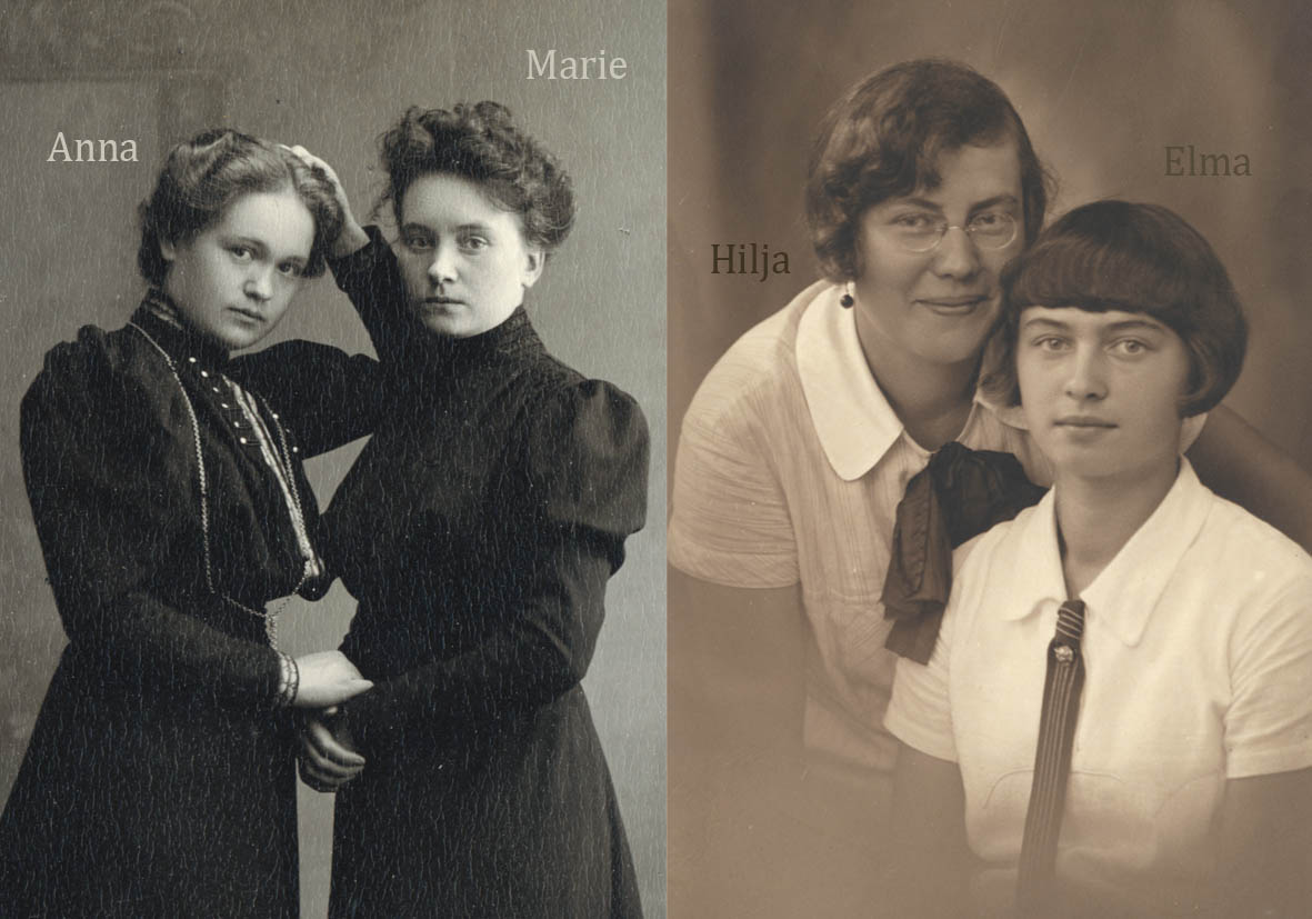 Plakati fotol on Marie, Elma, Hilja ja Jaan Riet koduateljees 1917. aastal.