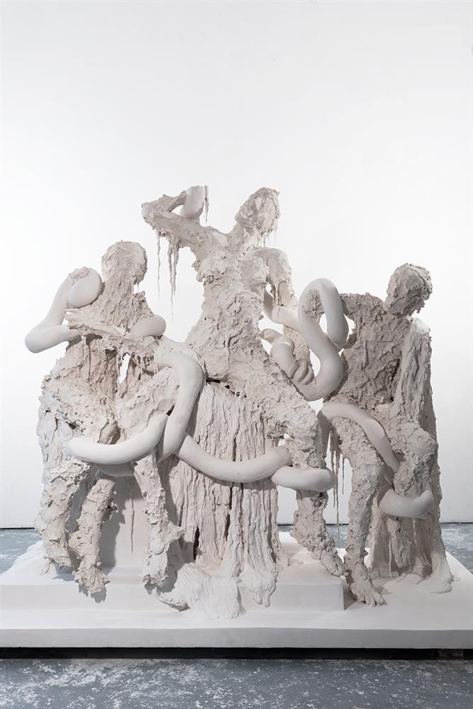 Lääne kunsti üks tõukejõude on olnud vanakreeka kunst. Lood Olümpose jumalatest ja ideaalse ilu kujutamine on kunstnikke inspireerinud ja võlunud läbi aegade. Suurem osa kreeka skulptuure, mis on loodud enne meie ajaarvamist, on küll hävinud ning paljud tollased teosed on tuntud tänu Rooma-aegsetele koopiatele, millega algas nende kunstiteoste järelelu. Sel näitusel on näiteks 1506. aastal Roomast leitud üks kuulsamaid antiikskulptuure Laokooni grupp, mis on rooma koopia kreeka algversioonist, saanud täiesti uue mõtte. Šveitslanna Sara Masüger on asendanud meeskangelased naisfiguuridega. Masügerile on Laokooni grupp kunstiteos, mida vaadates ei loe enam aja kulgemine, vaid see on asendatud keskendumisega hetkele. Selle hetke keskmesse on kunstnik asetanud skulpturaalse installatsioonina „Anonüümne“ (2019) iseenda keha.