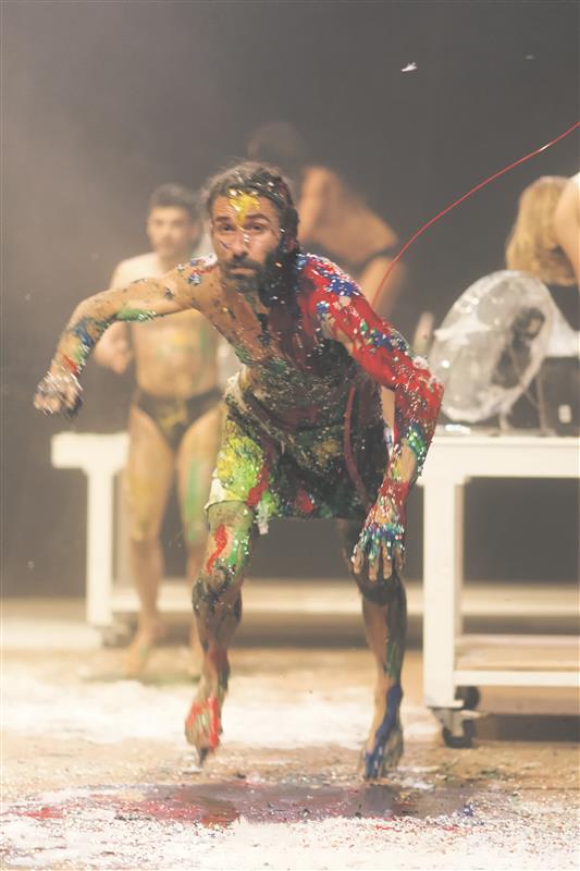 Toogad maha! Alastus on nüüd ja edaspidi norm, hõiskab Dionysos. Korpulentne ja lokkidega. Twerk! Kiiremini, puusad tööle! Publik on võidetud. Veel, veel enam kükki, veel väljakutsuvamalt. Hinge tõmbame homme. Kettidest hüppenöörid. Hüpe. Hüpe. Sajas. Tuhandes. Kiiremini, kiiremini. Publik plaksutab rütmi. Mahlapulk jahutuseks, aga vaid hetkeks. Taas hüpe. Sadu hüppeid. „Ei! Ei! Persse! Persse! Võta mind“ leinab koor. Verdi (itaalia) ja Hecuba (prantsuse keeles). Laiali pillutatud südamed. Verised, määrdunud südamed. Südamete pesemine. Kokutav koor. Kokutav Oidipus (saksa keeles). Ood fallosele – lendlevate tillide sirtaki. Jah, tõesti: „Iga mees väärib veidi hullust.“ Soovahetus – till reite vahele! Vein. Vines kõne. Maksa pesemine. Mozart ja mehed, kel peegelpildis naine. Huh, armuaeg – 40 minutit und. Esitajaile laval, lumivalgetes magamiskottides. 16 tundi ja 15 minutit lõpuni. Lipsan kiirele söögipausile.