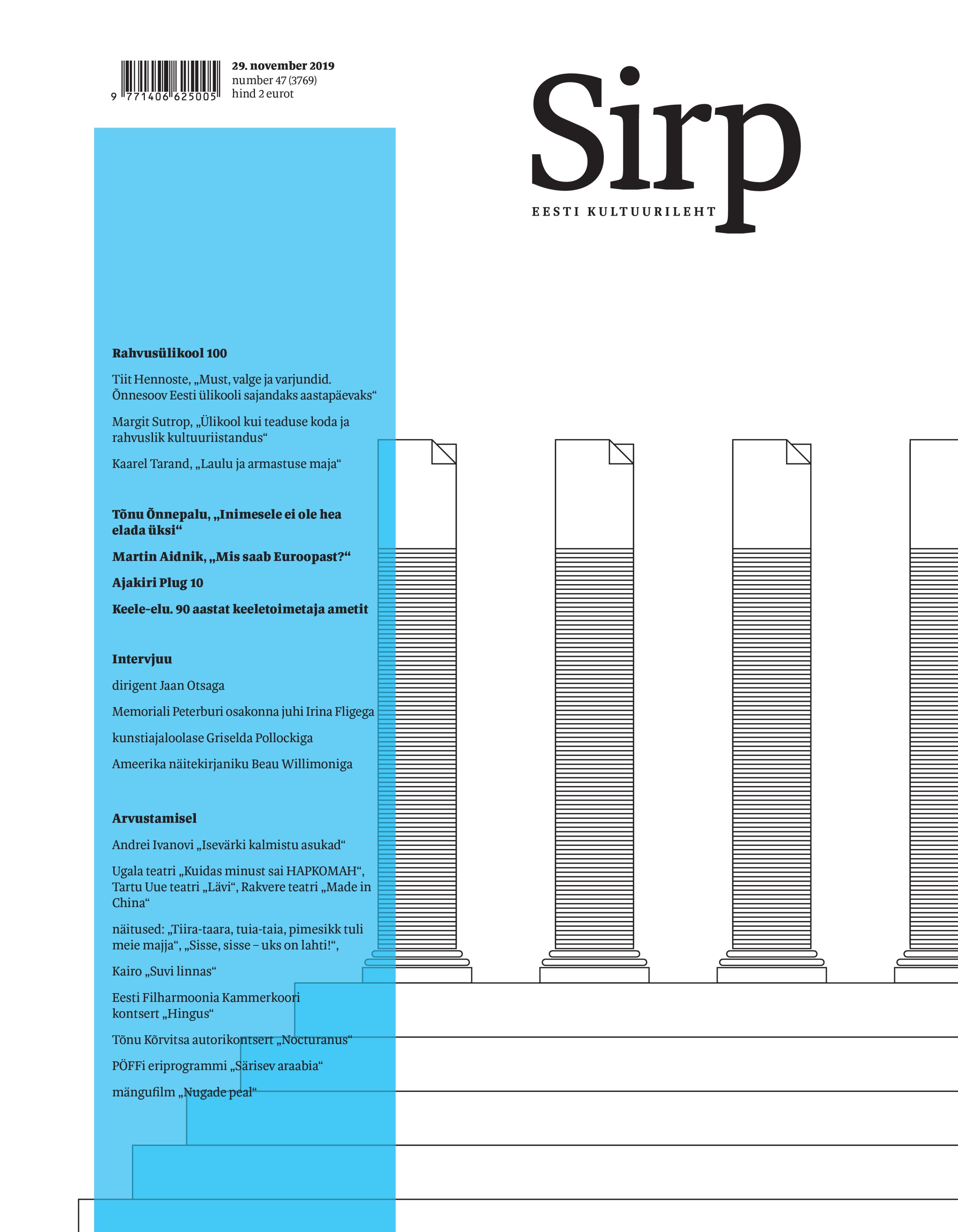 2017. ja 2018. aasta vahetusel, mil minust sai Sirbi laureaat, oli ajalehe toimetuses korraldatud koosviibimine. Pidin sealt minema edasi teisele üritusele: ka venekeelne ajakiri Plug oli kutsunud kokku oma autorid ja poolehoidjad. Kuulnud, et mul tuleb ühelt peolt teisele minna, küsis Sirbi tollane endine ja tulevane peatoimetaja Kaarel Tarand: „Aga mis asi on Plug?“ Minu vastus oli: „See, millega maad küntakse.“ Nimelt tähendab „плуг“ vene keeles „atra“.