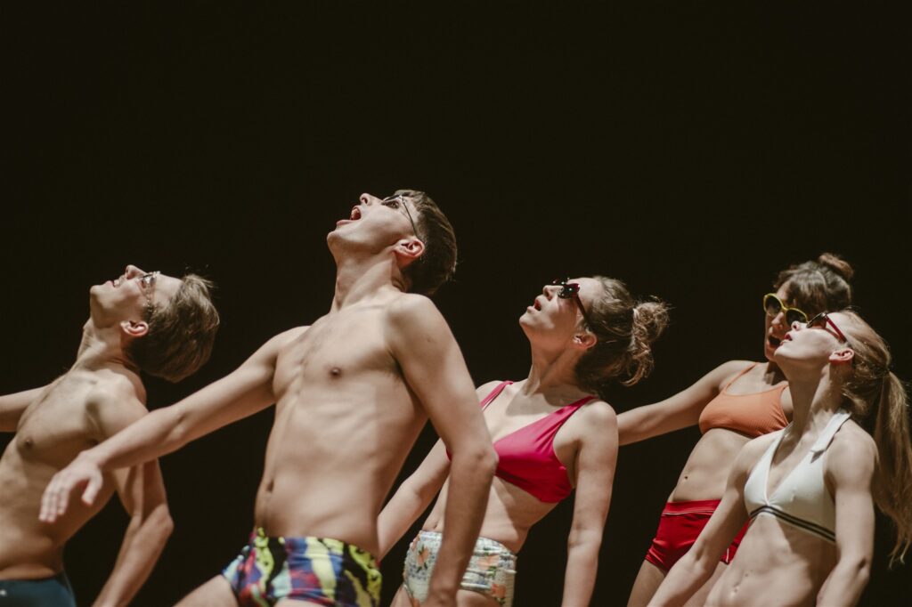 Gruuv kruvib end üles. Näitlejad saabuvad ükshaaval (kasukates jms) lavale. Seiravad üksteist ja publikut. Jõuan pisut (selliste) riiete üle imestada, kui juba selgub nende põhjus: ükshaaval hakatakse end neist vabastama. Oletan, et tegu on ühega menukatest tantsulavastustest, kus näidatakse esmajoones keha (ja algul paistab, et väga ei eksigi). Pesuni jõudes tõmmatakse peale ootuspärane pidur. Järgneb seeria enam-vähem suvaliste reeglitega suhtlusmänge, kus oma, eelkõige puhtformaalne, roll on nii rõival kui ka tekstil, rääkimata liikumisest.