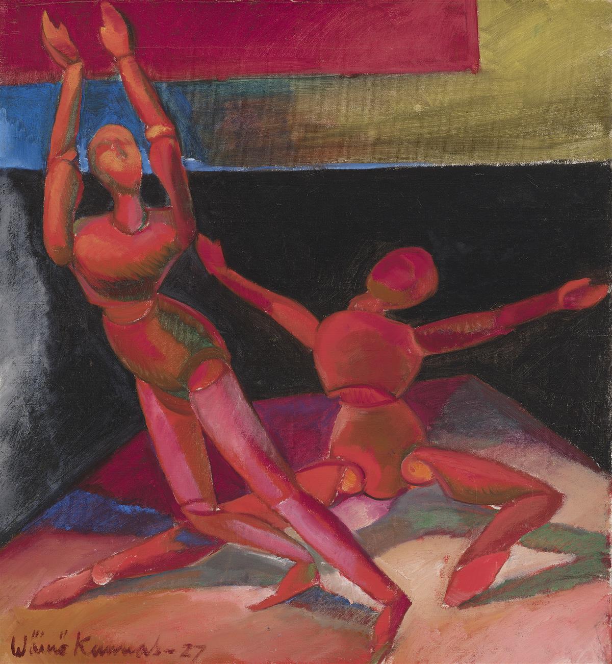 Väljapaneku keskmes on kahtlemata Väinö Kunnase „Tantsude“ sari. Sarja kolme tööd – „Punast tantsu“ (1927, Eesti Kunstimuuseum), „Kollast tantsu“ (1928, erakogu) ja „Halli tantsu“ (1928, Ateneum) koos näha on erakordne võimalus nii eesti kui ka soome publikule. Ülejäänud kahe asukoht pole praegu teada. Masinlikke inimnukke kujutavad maalid avavad värvidega emotsionaalseid seisundeid, inimese ja urbanistliku maailma suhteid ning endaks jäämise, juhitavuse ja võõrandumise vahekordi. Soome kultuuriloos on neid seostatud ka Kunnasele lähedase poetessi Katri Vala luuletustega. Ekspressiivse abstraheeriva käsitluslaadiga Väinö Kunnas oli eelkõige esimese maailmasõja järgse hoogsa linnastumise, moodsa inimese ja kaasaegse urbanistliku kiire elustiili ning tolleaegse masinaromantika ihaleja ja kujutaja. Ta kuulus märkimisväärseima kunstnikuna samu väärtusi hindavasse Tulekandjate kultuurirühmitusse. Tulekandjad oma samanimelise väljaandega oli Soome 1920. aastate tähtsamaid modernistlikke rühmitusi, kelle motoks oli taas avada aken Euroopasse. Eelkõige kirjandusliku rühmitusena oli eesmärgiks nende meelest liig rahvusluses kinni Soome kultuur viia Euroopa modernse kultuuri ja mõtteviiside arengutega ühte rütmi. Kunnas andis täpse silmaga edasi ajastu hingust ja inimkaraktereid. Ta maalis mitmete Soome kultuuritegelaste portreid. Väinö Kunnas suri 1929. aastal ainult 33-aastasena kopsupõletikku. Hingelt tõelise kosmopoliidi ainsaks välisreisiks jäigi 1928. aastal reis Eestisse. Tema loomepärandis on ka mitmeid Tallinna vanalinna motiive.