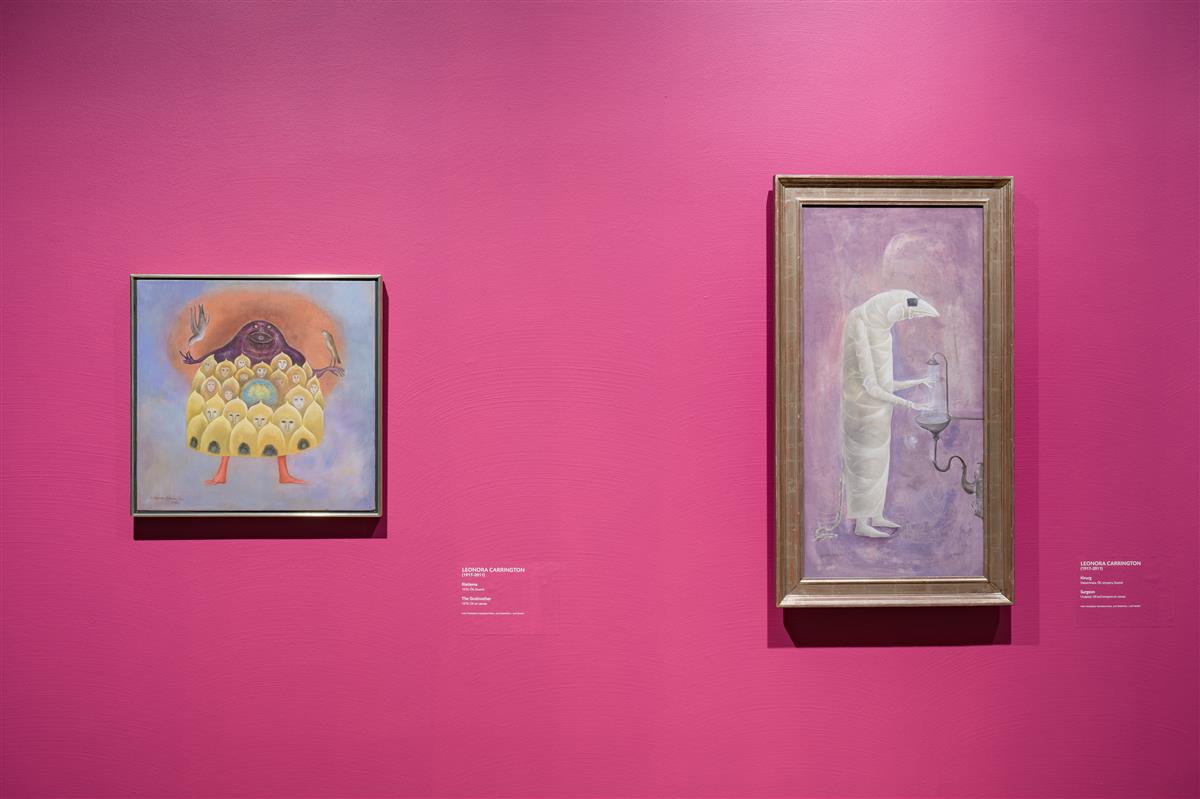 Mind rõõmustas väga, et näituse kuraatorid pöörasid eraldi nii suurt tähelepanu Max Ernsti ja André Bretoni muusa Leonora Carringtoni loomingule. Peaaegu kõigis olulistes sürrealismi käsitlustes on Carringtoni ja teiste naissürrealistide looming tagaplaanile surutud, ehkki just intuitiivne naiselik alge on sürrealismis eriti olulisel kohal. Esimest korda nägin suuremat hulka Carringtoni töid originaalis alles 2022. aastal Veneetsia Guggenheimi näitusel „Sürrealism ja maagia. Nõiutud modernsus“. Kumus tuleb küll pisut vaeva näha Carringtoni näituseosa üles leidmisega – see on peidetud kolmandale korrusele eesti klassikute vahele, aga seitsmest Mehhiko perioodi maalist koosnev nurgake väärib kindlasti otsingut.