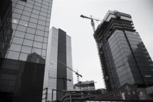 Ülal Maakri pilvelõhkujad. Maakri asumis, Tallinna pilvelõhkujate piirkonnas käib vilgas ehitamine. Tornide keskele tekib uus kvartal, mis peaks selle ala veelgi tihedamaks ja suurlinlikumaks muutma. Alles see oli, kui seal olid väiksed puumajad. Garaažide read ja ajutised parkimisplatsid ootavad veel oma aega. Tõenäoliselt tuleb ka neil taanduda uute pilvelõhkujate ees.