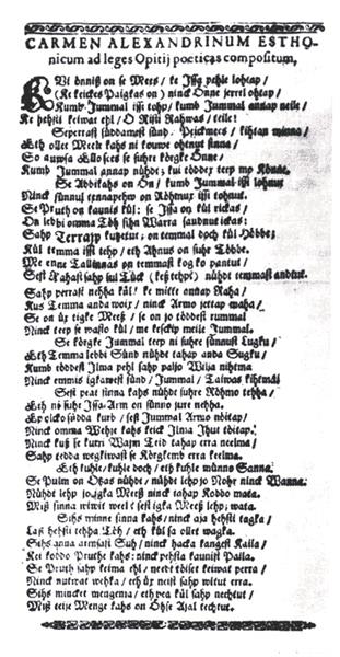 Reiner Brockmanni 1637. aasta juhuluuletus „Carmen Alexandrinum ...” on esimene teadaolev eestikeelne luuletus. Brockmanni luuletused saatsid ka Heinrich Stahli teoseid.