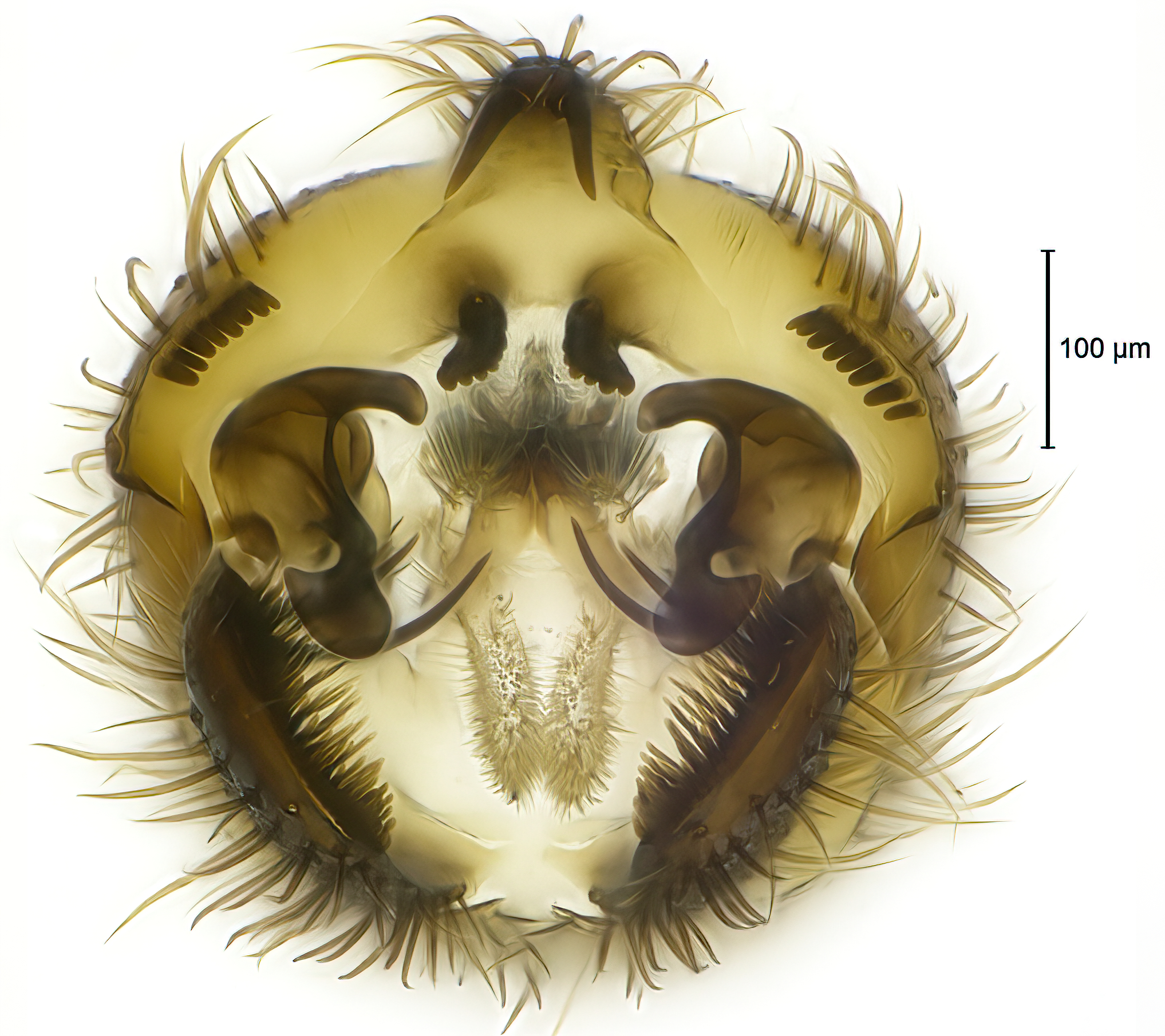 Seenesääse Clastobasis loici Chandler isase isendi tagakeha tipu tagantvaade. Liik on Euroopas suhteliselt haruldane ning Põhjamaadest-Baltimaadest leitud siiani ainult Eestis.