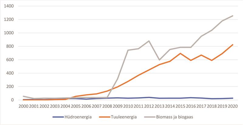 Taastuvenergia osakaalu eesmärgi saavutamisele on kaasa aidanud nii biomass kui biogaas, millest energia saadakse kätte siiski põletamise teel ehk CO2 õhku paiskamisega (joonis 4). Tasub meeles pidada, et biokütuste tootmise kasv nõuab samuti intensiivsemat metsa- ja põllumajandust. Näikse, kui kaua ja millistel tingimustel biomass Euroopa Liidu dekarboniseerimises osaleda saab.