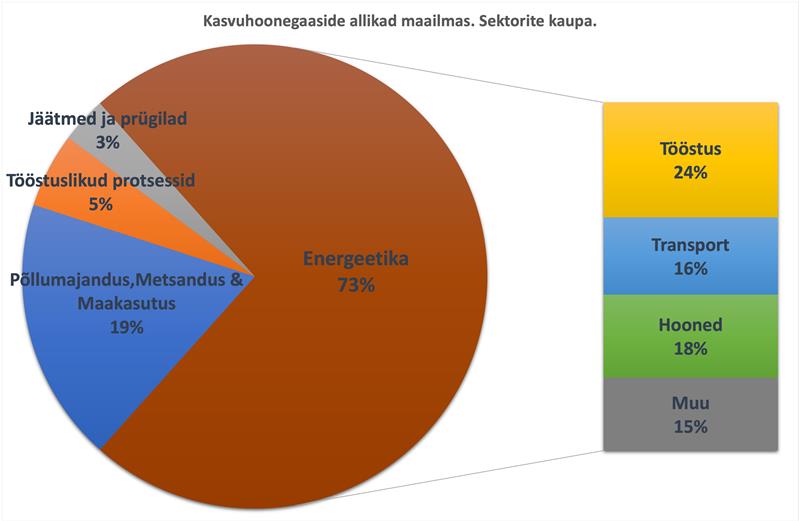 Võimaldades rahvastele väärikat elu ja heaolu, on energeetikasektor ülekaalukalt kõige suurem kasvuhoonegaaside tootja. Nii Eestis, Euroopas kui kogu maailmas pärineb ligi kolmveerand kõikidest kasvuhoonegaasidest energeetikasektorist (sisaldab nii transporti, hoonete kütmist/jahutamist, elektri tootmist kui tööstusenergeetikat).1,2