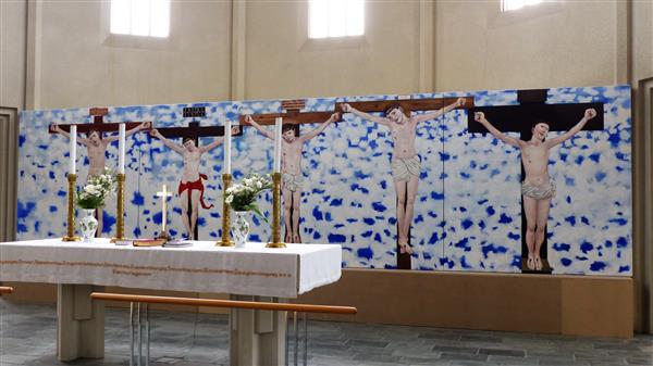 Kummalisel kombel polnud kiriku kõige tähtsam ruumiosa apsiid valgustatud, nagu see on lääne kirikutes tavaline. Kirikus oli tagasihoidlik külgvalgustus. Altari keskpaigas esimesel astmestikul oli poolhämaras kõrvuti viis või kuus ristilöödud Kristuse kujutist. Oli natuke naljakas näha korraga mitut Kristust. Tekkis pentsik mõte, et need on pildid poistest või lastest, kes harjutavad, kuidas ristil olla, et on kujutatud õppetundi. Pildid olid renessansi lineaarperspektiivi seisukohalt valesti maalitud, kuid tundusid siiski õigete, loomulikena. Oli see Islandi kristluse versioon? Väga inimlik versioon, täis lugupidamist ning kaastunnet kõigi kannatajate vastu.