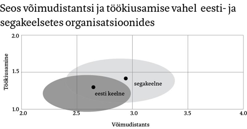Nimelt on segakeelses organisatsioonis töötavate inimeste hinnangud võimudistantsile ja maskuliinsusele kõrgemad ning individualistlike väärtuste osas madalamad. See tähendab, et segakeelsetes organisatsioonides peetakse tähtsamaks võimusuhteid ja mehelikku käitumisviisi, vähem olulisteks üksikisiku vastutuse ja vabadusega seotud väärtusi. Ebakindluse vältimise hinnangud statistiliselt suuresti ei erinenud. Üldisemalt saab tõdeda, et Eesti organisatsioonides võib esile tulla märkimisväärseid erinevusi, kui neid võrrelda töötajate koosseisust lähtuvalt.