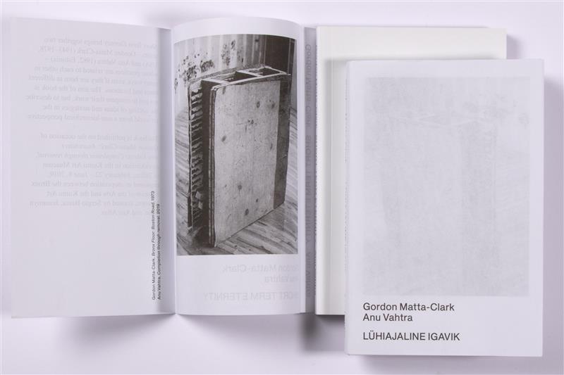 Matta-Clarki ja Anu Vahtra näitusel kogetud nähtamatu läbipaistvus on trükises valjendatud ootamatult, aga teravmeelselt: 70grammisest õhukesest sisupaberist kumavad läbi nii tekstiplokid kui ka illustratsioonid, mis on akendatud nii, et lehekülje loogilisse ülesehitusse on jäetud augud eelmisel ja järgmisel leheküljel nähtava aimamiseks. See võte struktureerib raamatukese ning resoneerib ootamatult tugevalt näitusel kogetuga. Kaanekujundus loob tunde, et mitte millestki on saanud midagi. Kasutatud kirjatüübid Times New Roman ja Courier on oma argises kiduruses samuti peaaegu nähtamatud, ent halastamatult alasti.