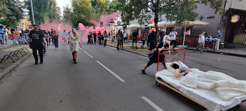 Õhtu laskudes liiguti Pärnu kesklinnast loovlinnakusse peamiselt Viljandi skeenelt pärinevate noorte (TEMA grupp) juhitud narratiivse unenäoparaadiga: veidi saatanlik jutustaja, voodis veere(tata)v tütarlaps, teised tegelased – deemonid ja inglid, kes teda unes saatsid-kiusasid, muusikud, ja muidugi festivali kunstnikud ja publik.