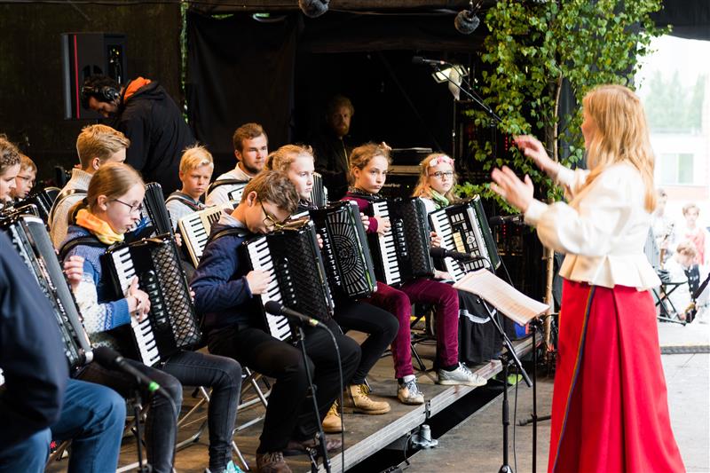 Rahvamuusikapidu XII noortepeol „Mina jään“ 1. VII Poolamäe pargis. Loominguline juht ning lõõtspillide ja koondorkestri liigijuht Juhan Uppin. Liigijuhid Pille Karras (kandled), Enrik Visla (viiulid), Kristel Laas (akordionid) ja Joosep Sang (mandoliinid).