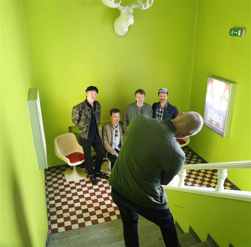 Ülemus Aku Louhimies (seljaga) ja reamehed Sihvonen (Kimi Vilkkula), Rahikainen (Andre Alén), Susi (Arttu Kapulainen) ja Honkajoki (Juho Milonoff) Sõpruse kinos dessandil.