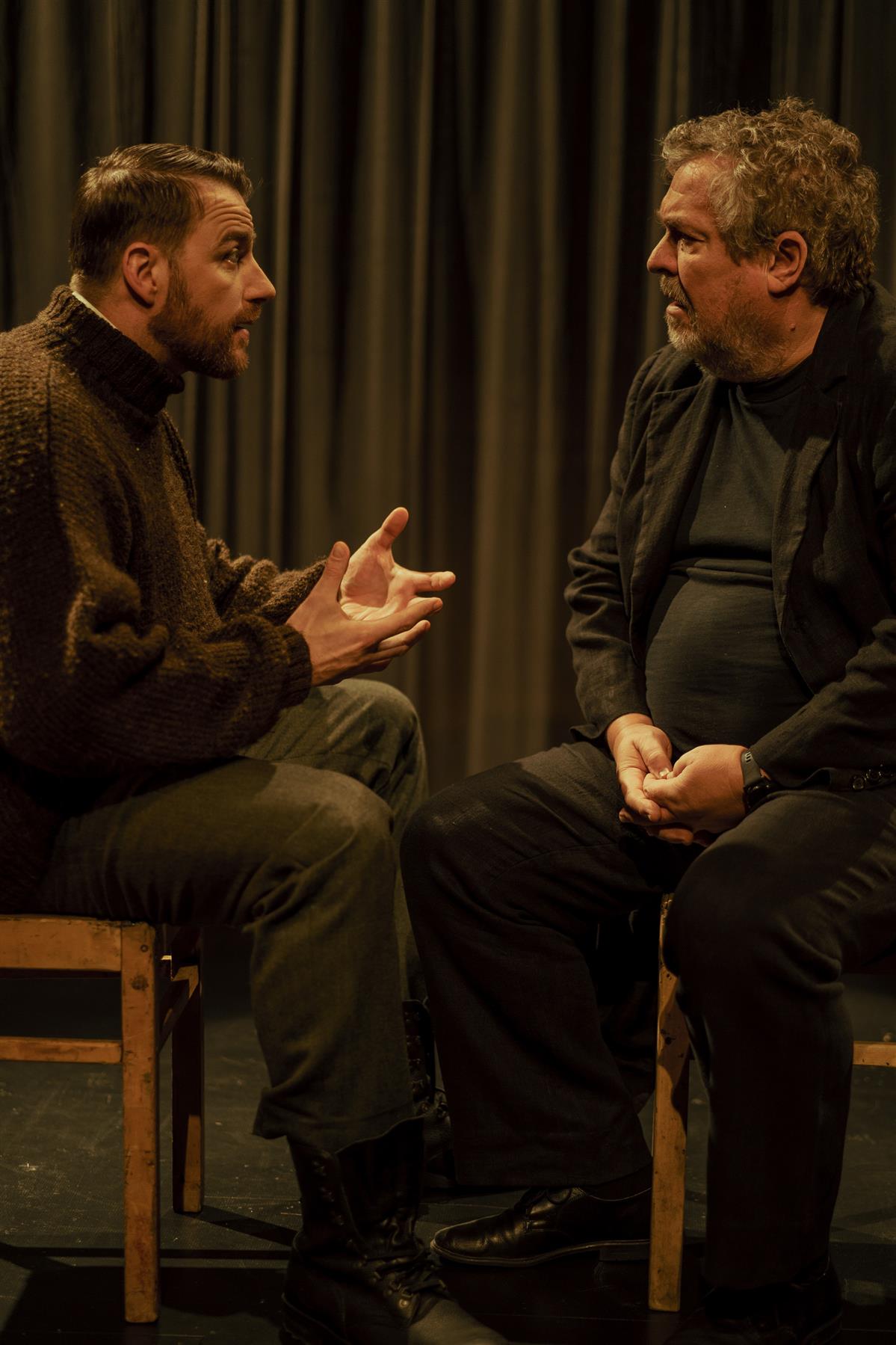 Teine mõnus ja õrritav küsimus on, mil kombel vaagida näitlejate rollisooritusi, kuidas jookseb, vonkleb, siugleb karakteriloome ja distantseerumise piir. Vihmar on sõnastanud eesmärgi puhastada lavailm olustikulisest ning vabastada tegelased tarbetust tundlemisest. See tulebki laval hästi välja. Näiteks kui Maret peidab näo kätesse, tähistab see nuttu, enamat pole vajagi. Kõige markantsem moment on, kui Pearule tuuakse korraks kargud ja Priit Loog demonstreerib pikaldast vanameheliipamist: et vaadake nüüd ära, ma oskan küll karkude najal longata nagu Kaarel Karm muiste. Aga Pearu olemus pole ju selles, vaid ikka mõtteilmas ja hingeelus.