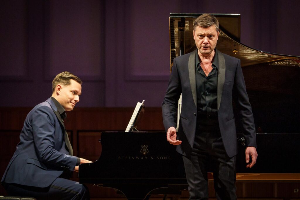 Kontserdi edenedes lisati tumedaid toone veel juurde: esitati Mahleri tsüklist „Des Knaben Wunderhorn“ ehk „Poisi võlusarv“ laulud „Revelge“ ehk „Äratus“ ja „Der Tamboursg’sell“ ehk „Noor trummilööja“. Rahvaluule kogumik „Des Knaben Wunderhorn“ avaldati algselt Napoleoni sõdade aegu üle 200 aasta tagasi ning sellesse kuuluvad tekstid on (vähemalt osaliselt) veelgi vanemad. Kahe kontserdikavva valitud laulu tekstid käsitlevad hukkumist ja sõdurielu, mis tehnilise varustuse poolest on küll kindlasti kahe sajandi jooksul muutunud, kuid inimese hirmud ja nii füüsiline kui ka psüühiline haprus on jäänud samaks. Need laulud kirjutanud Mahler lõi oma muusika tekstide avaldamisest omakorda sajand hiljem ja lahkus siit ilmast veel enne Esimest maailmasõda, kuid tööstusrevolutsiooni kulgu jälgides võis temagi ehk juba aimata, kui kohutavaks võivad inimese ebameeldivamad küljed muutuda, kui neile lisatakse masinate tundetus, füüsiline vastupidavus ja massilisus. Mis mõtted täpselt Mahleri peas seda kirjutades olid, ei tea, aga vähemalt 8. märtsil Estonia kontserdisaalis Elias Corrinthi ajuti brutaalset klaverimängu kuulates kõlas „Äratuse“ korduv „tralali, tralalai, tralalera“ masinlik-mehaanilise kordamisena ning selle kohati optimistlik mažoorne kontekst mõjus võltsi katsena hirmu tõrjuda ja teha nägu, nagu ähvardaks surm lahingus ainult teisi, mitte laulu peategelast. Istusin saalis tagapool ega näinud kahjuks Lauri Vasara miimikat, kuid tema häälest arvasin küll kuulvat allasurutud hirmu võbinaid, mida ta poetas oskuslikult kuulajaile n-ö ridade vahelt lugemiseks. Ma ei tea, kui pikalt ette mõeldes oli Vasar selle kontserdi kava planeerinud, kuid saalis seostus kuuldu mulle vältimatult Vene-Ukraina sõjaga – konkreetsemalt viimase aja heidutavate uudistega USA teisenenud hoiakust ning sõjalise abi ja luureandmete edastamise peatamisest. Laiemas plaanis pole see kahjuks maailmas ainuke sõjaline konflikt, millega need laulud võivad kuulajal seostuda.