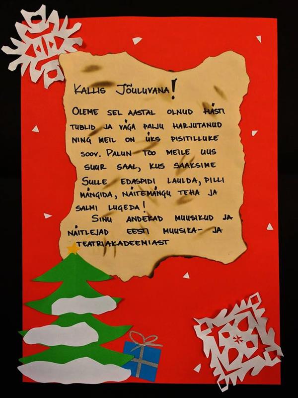 Olen varemgi proovinud Lassmannile saaliküsimuses „peale lennata“, aga ikka on asi olnud mingis otsustamisjärgus või n-ö järjekorras, mistõttu ei saa suurt enamat öelda, kui et ootame. Nii praegugi. Ka suur jõulukontsert, mis algab järgmisel neljapäeval kell 15 toomkirikus, ootab, pealkirja „Jõuluootuse muusika ja marss mäest alla!“ järgi küll pühi, ent laiend selgitab, et EMTA koor ja orkester annavad kontserdi Eesti muusika- ja teatriakadeemia saali ehituse toetuseks. Kontserdijärgse teatraalse marsiga 19 trummi saatel Toompealt all-linna kutsutakse ühinema nii publikut kui ka muidu poolehoidjaid, et riigikogu ja linnarahvaski märkaks. Või ärkaks?