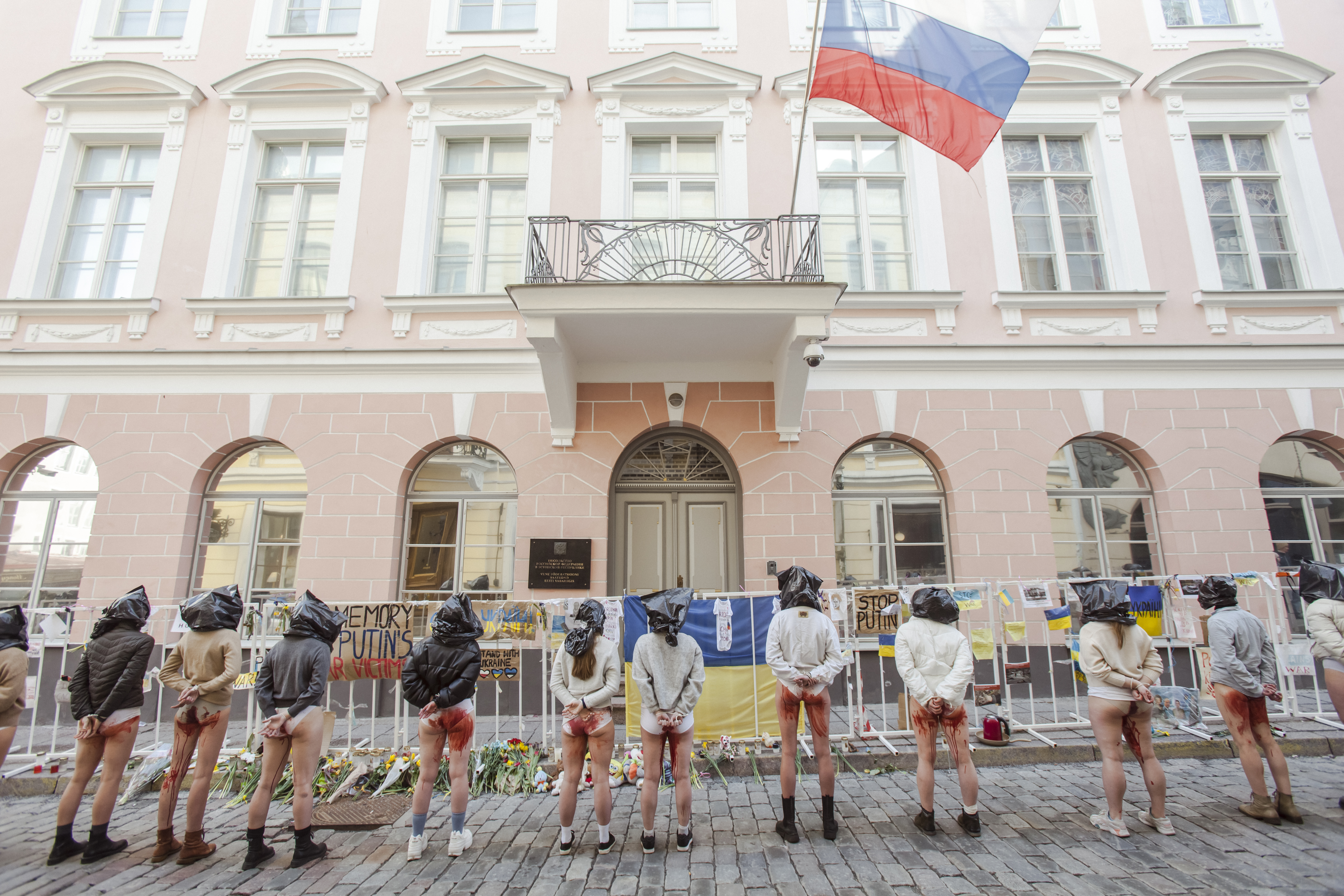 Ka kunstnikud protestisid sõja vastu, sedastades Vene sõduri argpükslikku ja julma vägivallatsemist tsiviilisikute kallal. Muutus ka aktivistliku protestikunsti tähendus: protesti eesmärk ei ole ainult vastasele vastu astumine, tema muutmine, vaid meeleheites ja leinas inimeste ühendamine. Oktoobris eksponeeris Anrike Piel Tallinna keskturu lihalettide kohal ukraina põgenikele tehtud alandavaid tööpakkumisi, kus Eesti tööandja ei taha maksta, elamiseks pakub lukustamata tuba. Piel väljendas teosega tülgastust väiklase mentaliteedi vastu: hoolimatusest juhtub tihti halba. Novembris avasid Kaisa Eiche ja Kadi Estland Hobusepea galeriis kurbuse ja ängi talumist hõlbustava näituse. Eiche oli oma fotodel toonud sõjasündmused Eestisse ja lavastanud fotodel olukorra, kus näituse vaataja ja tema lähedased pidid ise pommide eest keldrisse varjuma. Milline on siis pilt? Sõjahirm, -lein ja -viha on tugevad tunded, need ei ole lüürilised, isegi mitte melanhoolsed, vaid, nagu Estlandi luules, purtsatavad võikalt esile argises ja harjumuspärases. Estlandi luuletustes manatakse kord silme ette stseene nõukogudeaegsest lapsepõlvest, järgmiseks hüpatakse seal kibedusele, mis tekib mõttevahetuses äärmuskonservatiiviga.