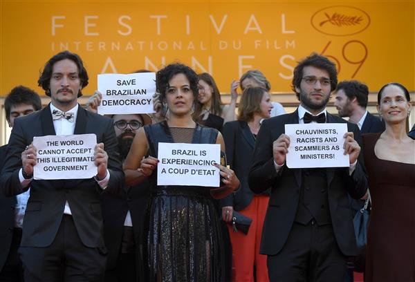 Peale meeleavalduste riigi sees on Brasiilia staarid ka välismaal uue valitsuse vastu sõna võtnud. Cannes’i filmifestivali viimasel päeval astus filmi „Aquarius“ kogu meeskond, sealhulgas staarnäitleja Sonia Braga punasele vaibale Rousseffi toetavate ja tema kõrvaldamist vägivaldseks riigipöördeks nimetavate plakatitega.6 Aktsioon ajendas ka teisi koreograafe ja teatraale tegema Euroopa või ka Ladina-Ameerika turneedel samalaadseid väljaastumisi.
