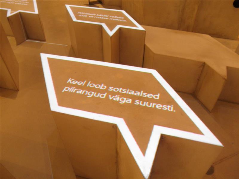 Näitusesaalides torkab silma monitoride rohkus. Ekraane on nii seinal kui iseseisva objektina. Selge see, et ajaloo kulgu on parem näidata liikuva pildina, mitte staatilise visuaali (objekti, joonise, foto) kujul. Nüüd ongi meil uues muuseumis olukord, kus tullakse koos püsti seistes televiisorit vaatama. Minu teismeline poeg ei vaata televiisorit juba ammu ning naerab mu üle, kui mina seda teen. Kuidas õnnestub tuua meie koolinoori klasside kaupa üheskoos seistes videot vaatama? Vist käsu korras ainult.