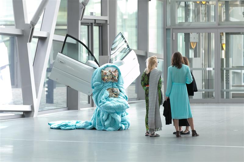 Kris Lemsalu installatsiooni „Car2Go“ (2016) fotoga kutsutakse näitust vaatama keskpanga kodulehel.