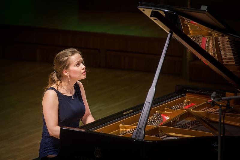 Kristi Kapten esitas soolokontserdil „100 aastat Eesti Vabariiki“ valiku just hiljuti klaverifestivalil „Virmalised“ kõlanud teostest. Estonias mõjusid ka lühipalad suurelt, Kadriorus aga koduselt. Fotol Kristi Kapten festivalil „Virmalised“.