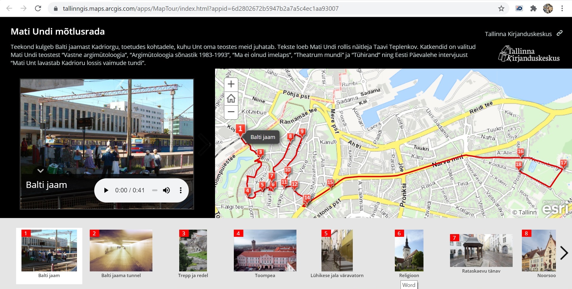 Veebilehel „Kirjanduslik Tallinn“ kogutakse ja tähistatakse ilukirjanduses käsitletud Tallinna paiku, märgitakse kaardile kirjanike elukohad ja tähtsamate kirjanduslike sündmuste toimumispaigad. Koostatud on ka mitu audiolugudega kaardirakendust. Vt kirjandusliktallinn.ee.